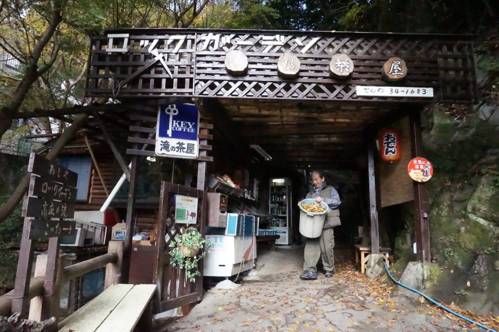 六甲山の紅葉は見頃過ぎかなぁ、という感じで滝の茶屋さんも落ち葉拾いに大忙しの様子でした。