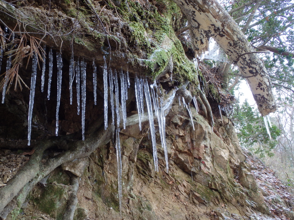 有馬温泉から登りはじめて1時間で雪とつらら、霜柱はっけん!
