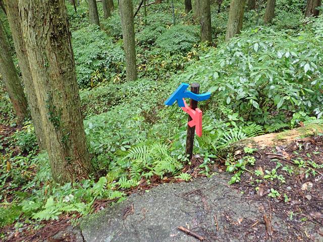 道しるべは、ピンクとブルーの「リボン」「矢印」「カンセ」「石のペイント」